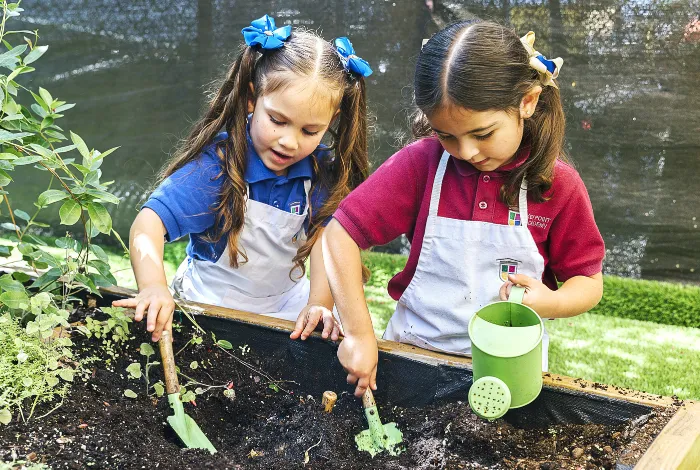 Our Gardening program is designed to give our Pre-k 3 and Pre-k 4 students the opportunity to experience the plant life cycle through weekly visits to the school garden. Students will learn about the basic role of soil in our diet and health and will develop an early understanding of the importance of caring for and nurturing our planet.